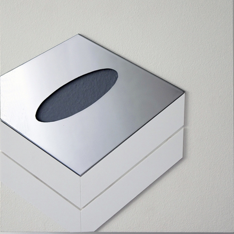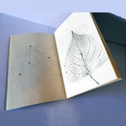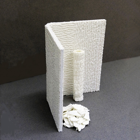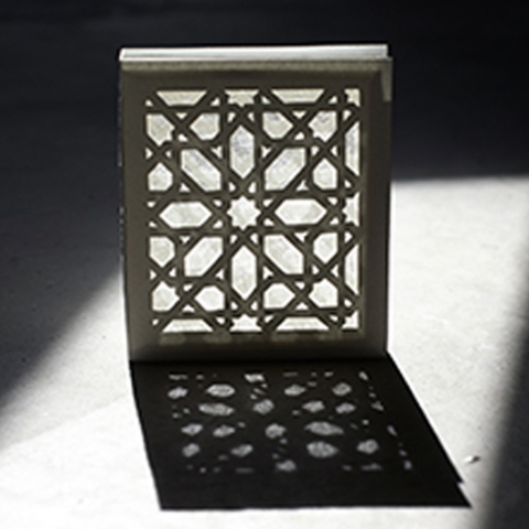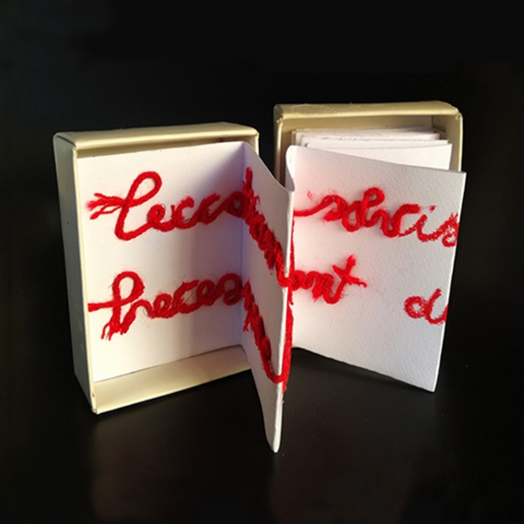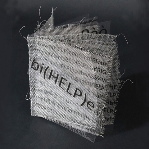 "Piccola installazione libretto bianco" 2019 Incisione su reticolato di polietilene cm. 14x15x9 – opera donata