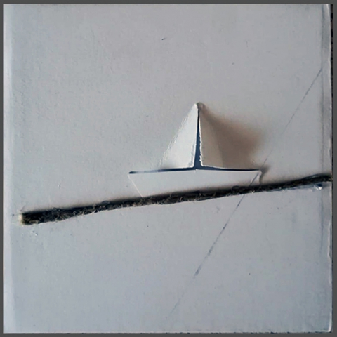 Volare in profondità 2018 Legno, smalto, polipropilene Cm 15x11x3,6 – opera donata
