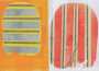 Così nel volumetto TRES CHIC, ad esempio, la metamorfosi formale subita dalle immagini degli animali è ottenuta con campiture di colore variamente stese sulla lastra originale, o dall’inserimento in essa di un merletto, per ricreare, in moduli decorativi astratti, la loro nuova immagine fantastica. Mentre nell’assetto iconografico del libro SOUS LE SOLEIL SE CACHENT alla luminosa tonalità dei colori stampati in calcografia è affidato il compito di definire, per mimesi cromatica, le forme astratte che costruiscono i personaggi della storia, componendole su tutta la a pagina. Nel cui bianco essi spariscono e ricompaiono, stimolando la capacità visionaria della nostra ’immaginazione a riconoscerne la presenza. La stessa capacità che rende possibile a Lucia Sforza di mostrarci l’immensità del mare, descritta dalle parole del testo nel racconto LA BARCHETTA, condensandola nell’immagine di onde turchine racchiuse con ordine in una tazza. Nella quale una barchetta di carta naviga, immobile, seguendo la rotta di un lento “pensiero d’amore”, che certo la farà arrivare più lontano di dove potrebbe giungere solo con la pagina scritta.
