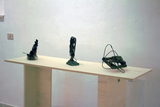 Crocenzi, infatti, propone sculture inedite, realizzate assemblando materiali eterogenei, che saranno esposte in piccoli gruppi; Gobbi presenta anche lui inedite opere calcografiche da incisioni a puntasecca, ognuna collocata all'interno di singole cartelle in metallo.