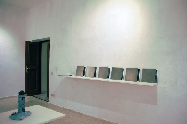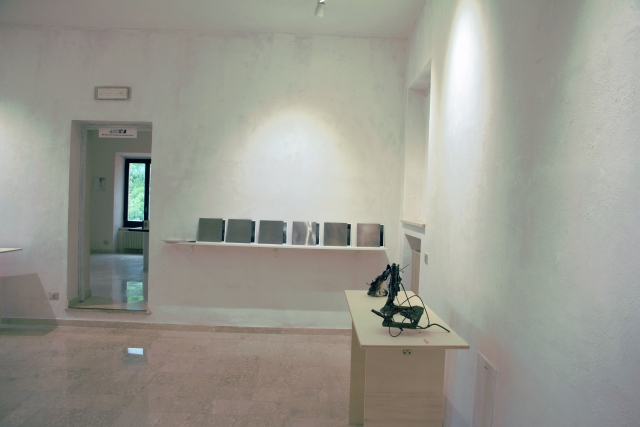 L’allestimento installativo, svolto appositamente “in orizzontale” su piani e tavoli, è dettato dalla volontà di indurre le persone, dopo un iniziale spiazzamento, ad una visione immersiva in una ipotetica “terra cambiata” dove ci si possa fermare in ascolto di un sentire perturbante, alla ricerca degli indizi di un “qualcosa che è cambiato”, quel cambiamento del mondo e della realtà che entrambi gli autori cercano di rappresentare nei propri lavori.
