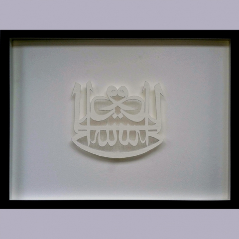 Delio Gennai "Scrittura Cufica" 2018 30 x 40 x 1 cm.- Cartoncino intagliato e garza DONAZIONE artista